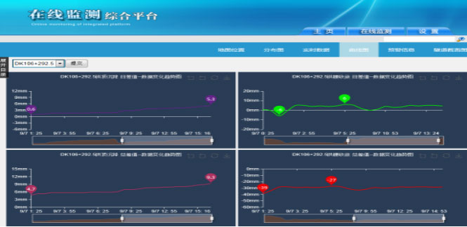 用戶通過該平臺根據(jù)權(quán)限查看各自站點數(shù)據(jù),數(shù)據(jù)可以現(xiàn)場布局圖顯示,也可以二維曲線顯示,還可根據(jù)時間段設(shè)置打印報表。同時可以設(shè)置具體每個傳感器的幾級警戒值,超過警戒值會自行報警。系統(tǒng)平臺可海量數(shù)據(jù)存儲,所有數(shù)據(jù)均有備份,可以追根溯源。
