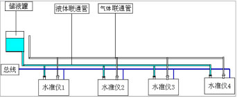 工作原理:各沉降監(jiān)測點安裝壓阻式靜力水準儀,并需要在一相對不動點安裝基準罐。傳感器之間通過高強度的氣壓管聯(lián)接一起匯入到基準罐,每個水準儀內(nèi)部都安裝有高精硅壓傳感器,在基準罐與傳感器之間充滿液體介質(zhì),水準儀內(nèi)的壓力傳感器感測到的是該點到基準罐液體表面的壓力,該壓力與液面高度有一定線性關(guān)系。如果壓力傳感器感測到壓力發(fā)生變化即說明該點與基準液面之間的高差發(fā)生變化,根據(jù)出廠前的壓力變化量與液面高差的標(biāo)定線性表,靜力水準儀內(nèi)部的單片機可以計算出高差變化值。根H=P/ρ*g計算出從測點到基準點液面到傳感器高度。原理示意圖如下: