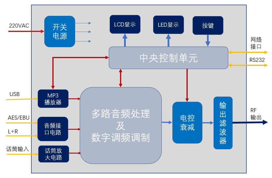 隧道緊急廣播處理器是一款集高品質麥克風放大器(可以提供幻象電源)、數字音頻信號輸入電路、模擬音頻信號輸入電路、MP3播放器、數字化調頻廣播調制器等于一體化的專業設備